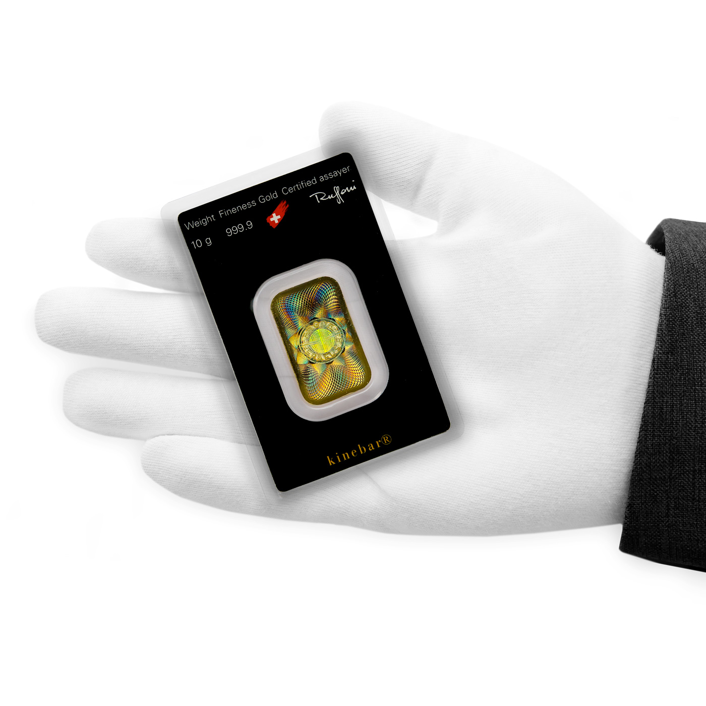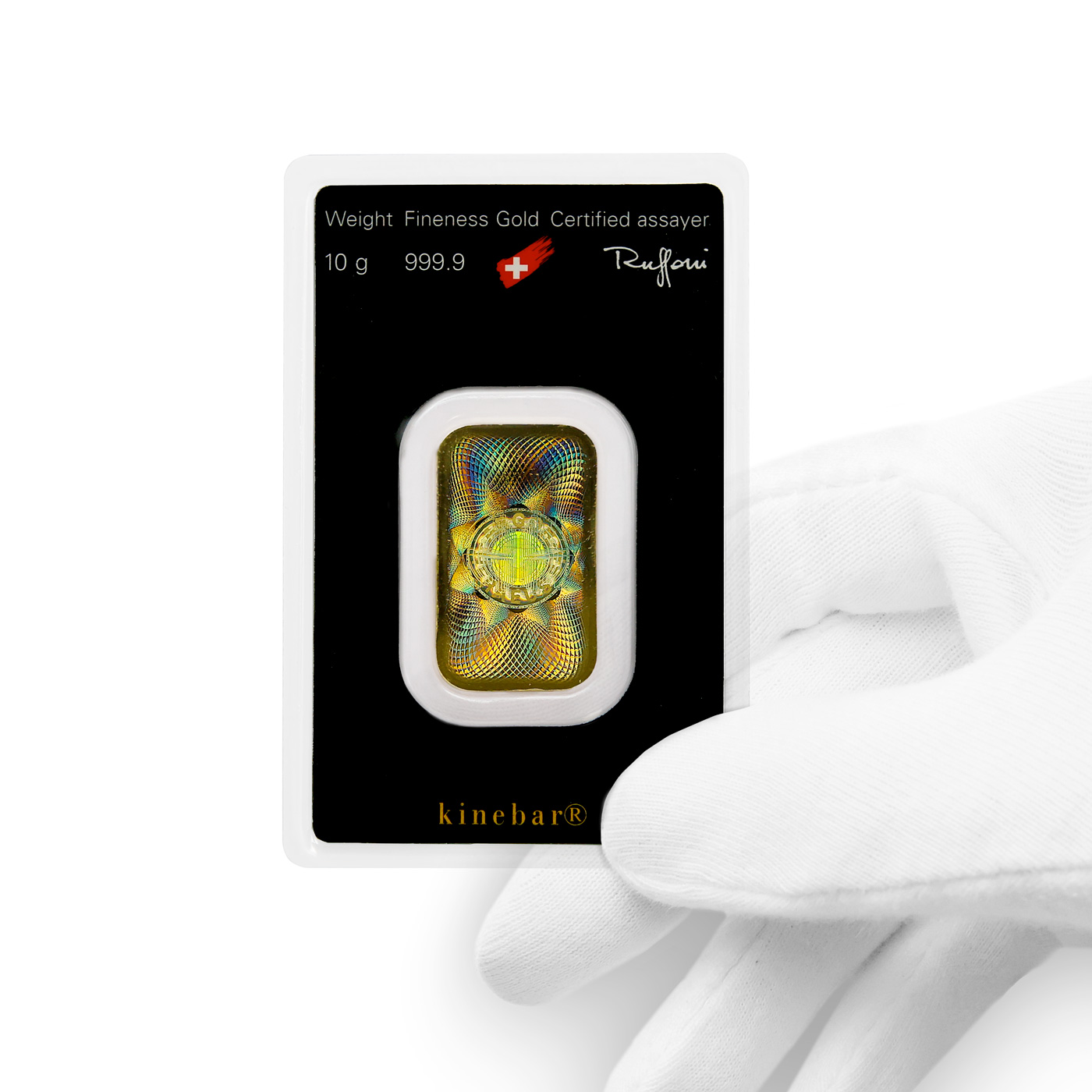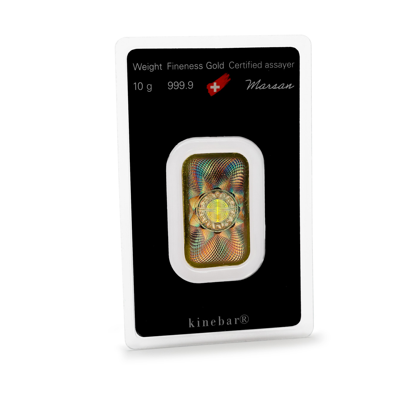 Kinebar® je světový unikát, který je vytvořený technologií Kinegram® (OVD Kinegram Corp.) na zlaté slitky. Kinegram® - Obraz kinegramu je vytvořen jemnými linkami různé hloubky a tvaru. Při změně úhlu dopadajícího světla se obraz kinegramu postupně mění a vytváří efekt pohybujícího se obrazu. Speciální high-tech zabezpečení Kinegram® embosované do substrátu slitku drahého kovu je označováno jako Kinebar®.