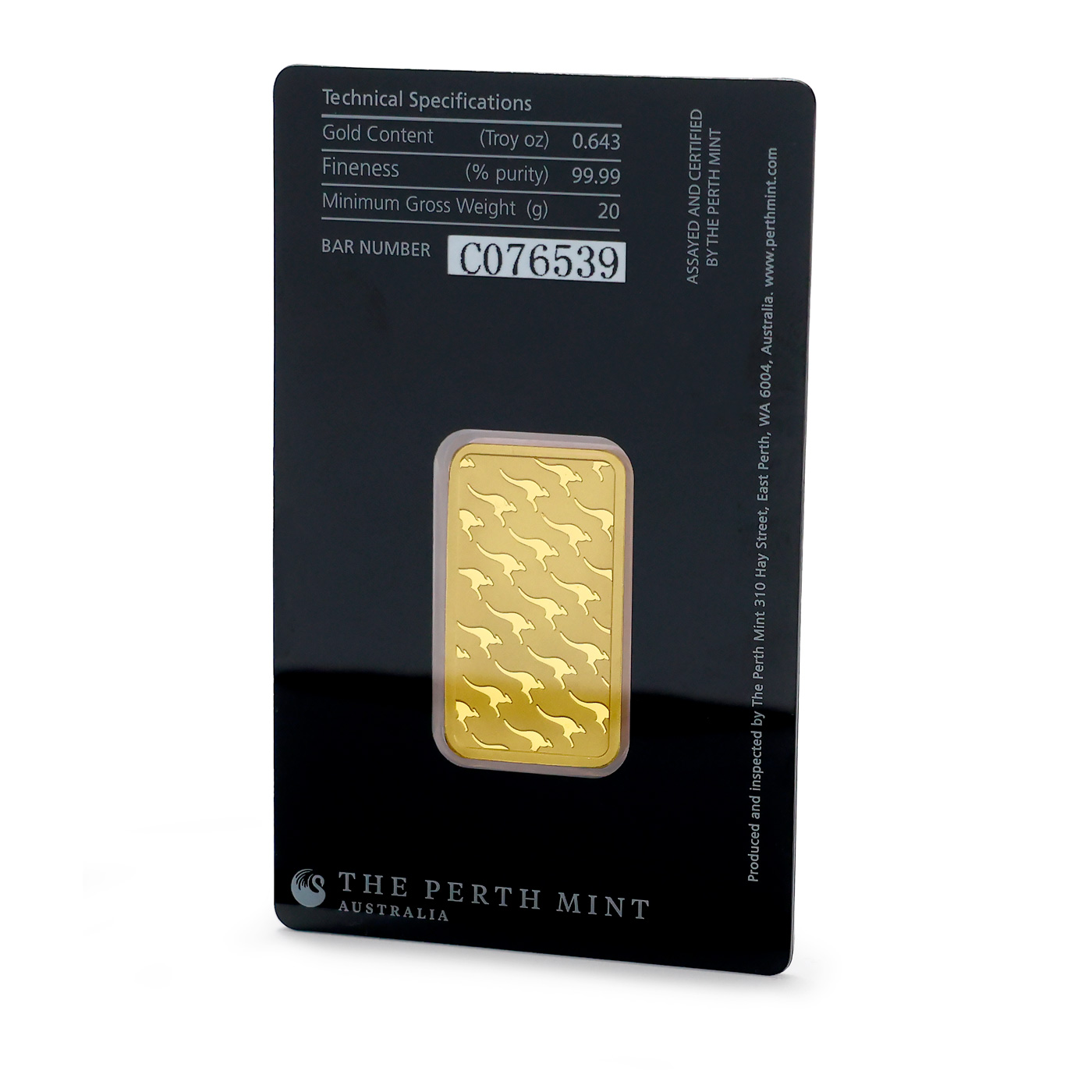 Slitky Perth Mint nesou na své zadní straně vyobrazení klokana. Australské zlaté slitky z 24 karátového zlata, certifikované australskou mincovnou Perth odpovídají londýnskému standardu Good Delivery (LBMA) a jsou proto bez problémů akceptovány na všech trzích. Doklady autenticity (logo dodavatele, rafinéra, unikátní čislo) a váha jsou deklarovány na svrchní straně slitku.