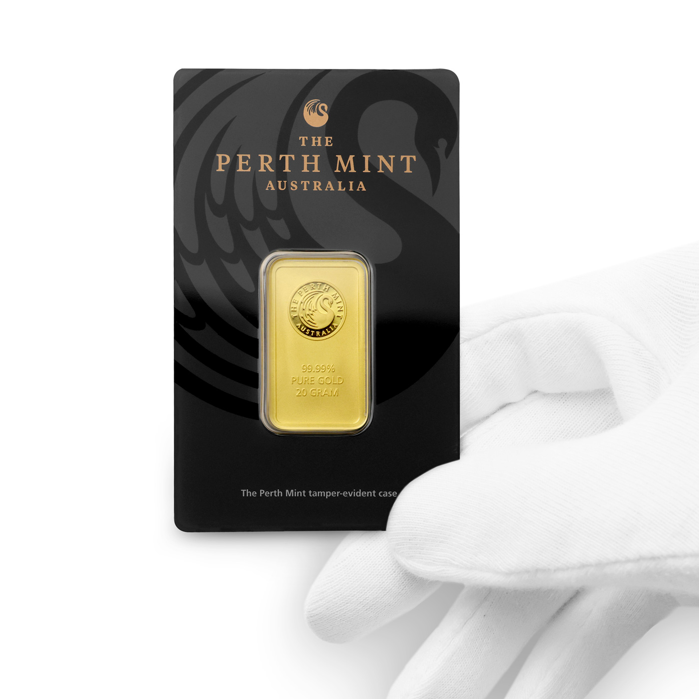 Přední strana slitku označuje výrobce, čistou váhu v gramech, své identifikační číslo a zobrazeni labutě logo mincovny Perth.