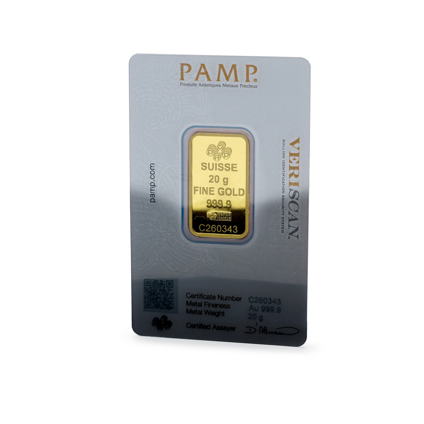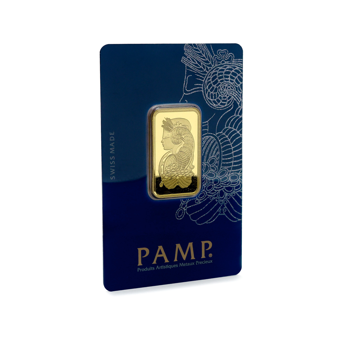Švýcarské zlaté slitky z 24 karátového zlata, certifikované švýcarskou rafinérií PAMP odpovídají londýnskému standardu Good Delivery (LBMA) a jsou proto bez problémů akceptovány na všech světových trzích. Přední strana slitku označuje výrobce, země původu „SUISSE“, čistou váhu v gramech, údaje o ryzosti kovu, zobrazeni loga rafinérie „PAMP ESSAYEUR FONDEU“ a identifikační číslo cihličky shodné s certifikátem. Ražené slitky nesou na své zadní straně vyobrazení římské bohyně štěstí - Fortuna (Tyché), která sype z rohu hojnosti svým příznivcům, zatímco zadní strana litých slitků je čistá, bez motivu.