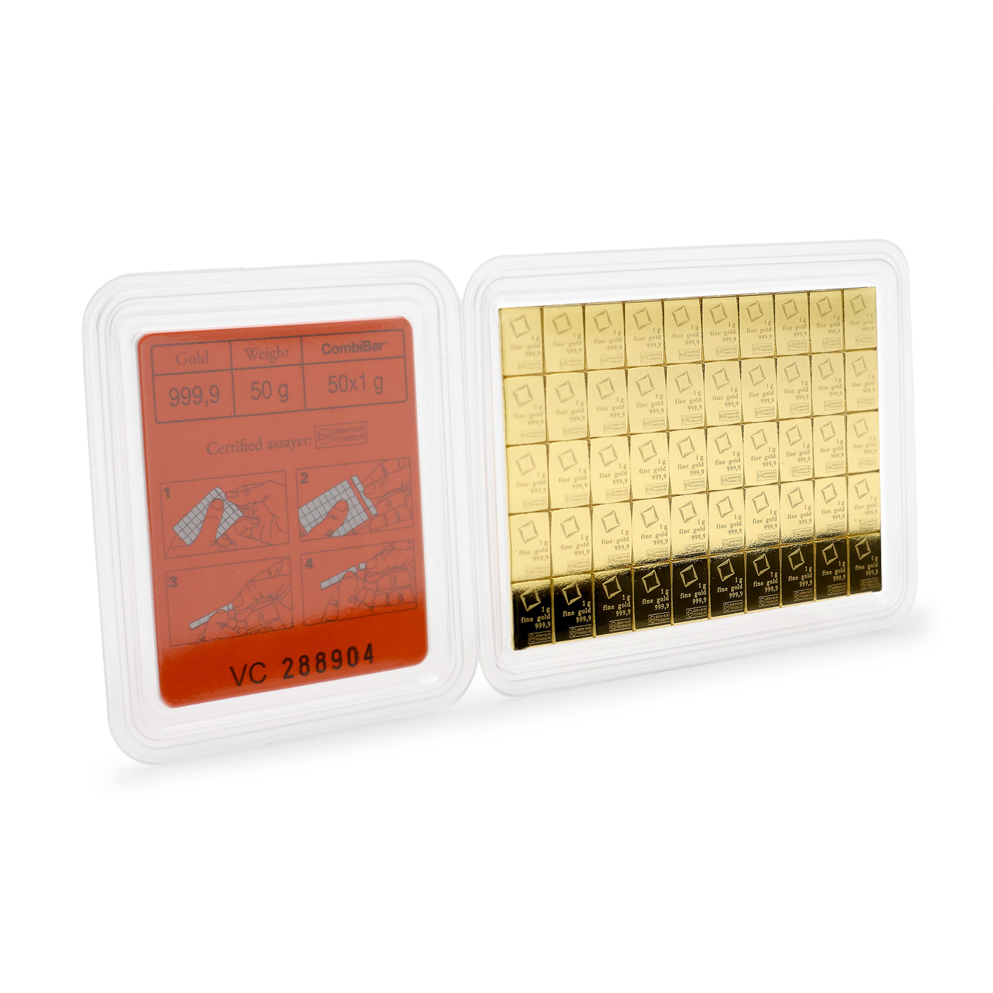 50 x 1g Combi Bar Valcambi SA Švýcarsko Investiční zlatý slitek