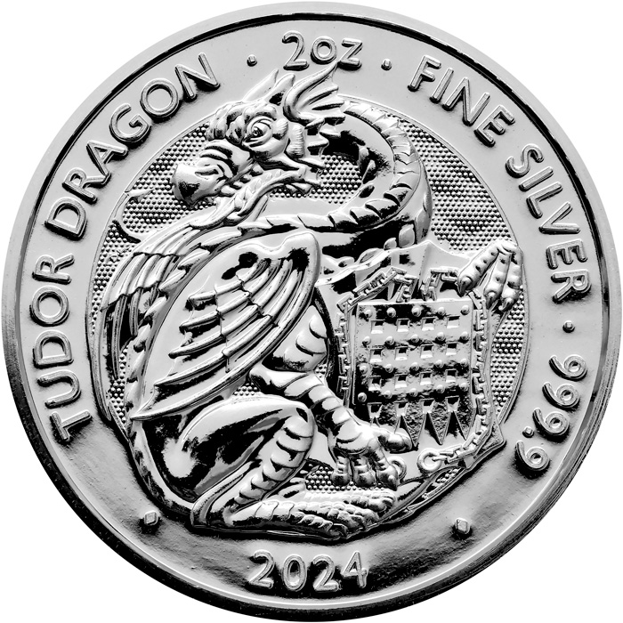 Stříbrná investiční mince o váze 2 Oz (62,2 g) v ryzosti nejčistšího 99,99% stříbra, vydaná Britskou královskou mincovnou pro rok 2024, je pátou mincí série "The Royal Tudor Beasts", která je věnována deseti heraldickým zvířatům krále Jindřicha VIII. Tudora a jeho třetí manželky Jane Seymourové. Královský svazek dokládají panter Seymourů, lev Anglie, chrt Richmondu, yale Beaufortu, drak Tudorovců, jednorožec Seymourů, královský drak, královnin lev, býk z Clarence a královnin panter.
