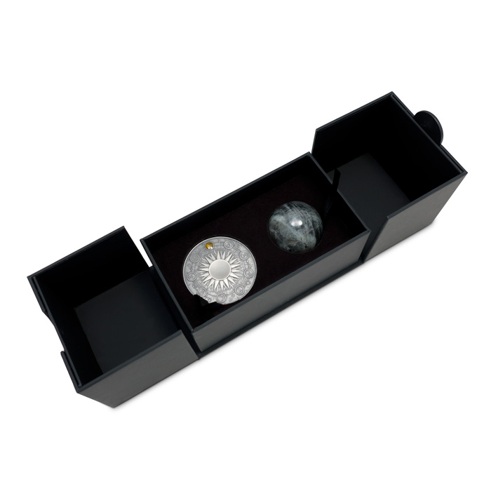 Každá sada exkluzivních mincí je dodávána v elegantním boxu s vyobrazením oběžné dráhy planet. Emisní náklad je celosvětově limitován na 500 kusů pro celý svět!