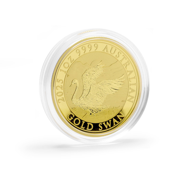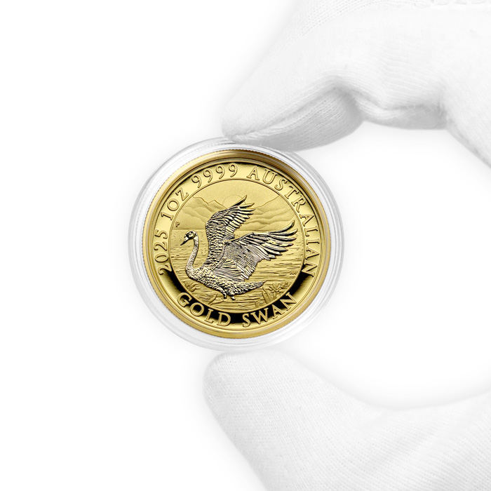 Unikátní zlatá investiční mince, ražená mincovnou Perth Mint v roce 2025 v ryzosti nejčistšího 99,99% zlata o hmotnosti 1 Oz (31,1 g), nese na svém rubu symbol mincovny - labuť - která je také součástí jejího loga. Mince Australian Swan byly uvedeny na trh v roce 2017 a pro každý ročník je připraven nový originální motiv, stejně jako tomu je např. u zlatých investičních mincí Kangaroo (Klokan).